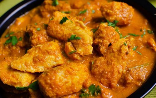 Deboned fish cooked in onion sauce with fresh ginger, garlic, spices